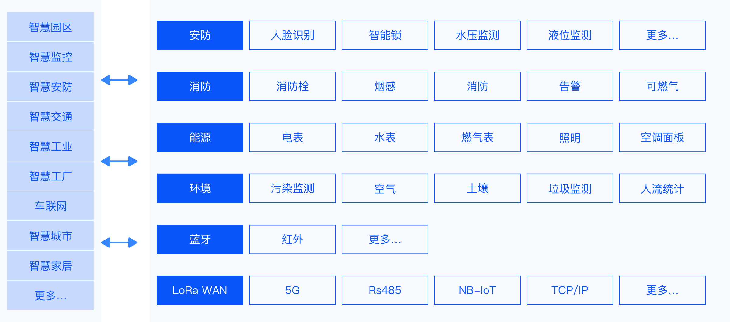 对接百余种终端协议,覆盖多样化智慧场景,赋能业务平台物联网对接能力,缩短项开发周期。