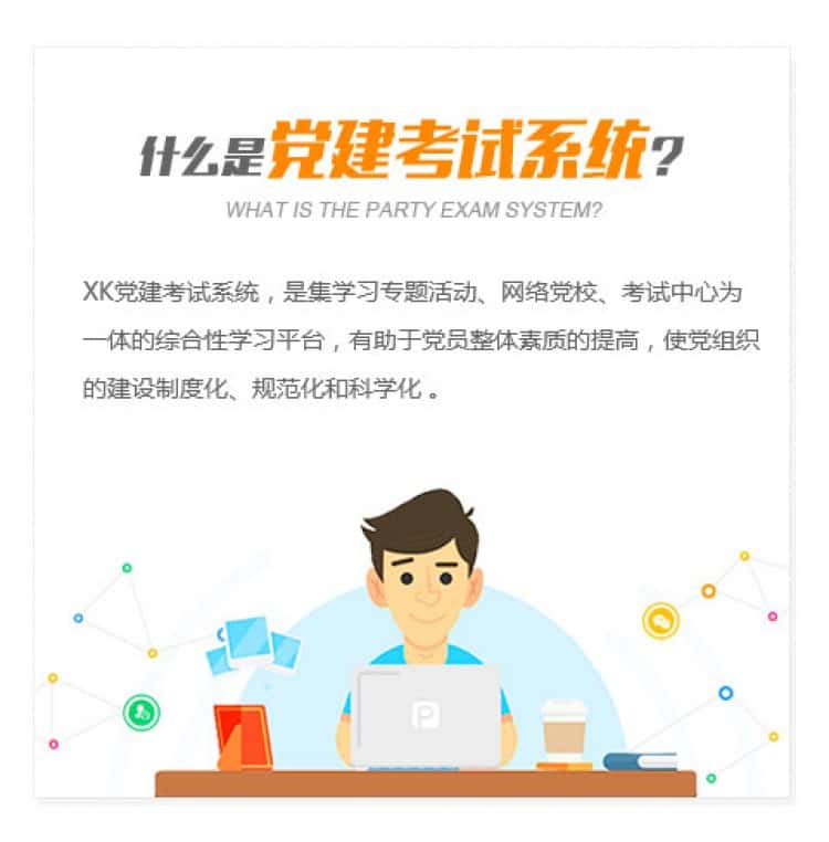 XK党建考试系统,是集学习专题活动、网络党校、考试中心为一体的综合性学习平台,有助于党员整体素质的提高,使党组织的建设制度化、规范化和科学化 。